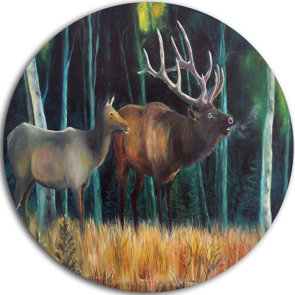 Bring Contemporary Abstraction to your home with this large Circle Metal wall art. This Wandering Deer in Forest Metal Artwork makes it the focal point of any room or office.
