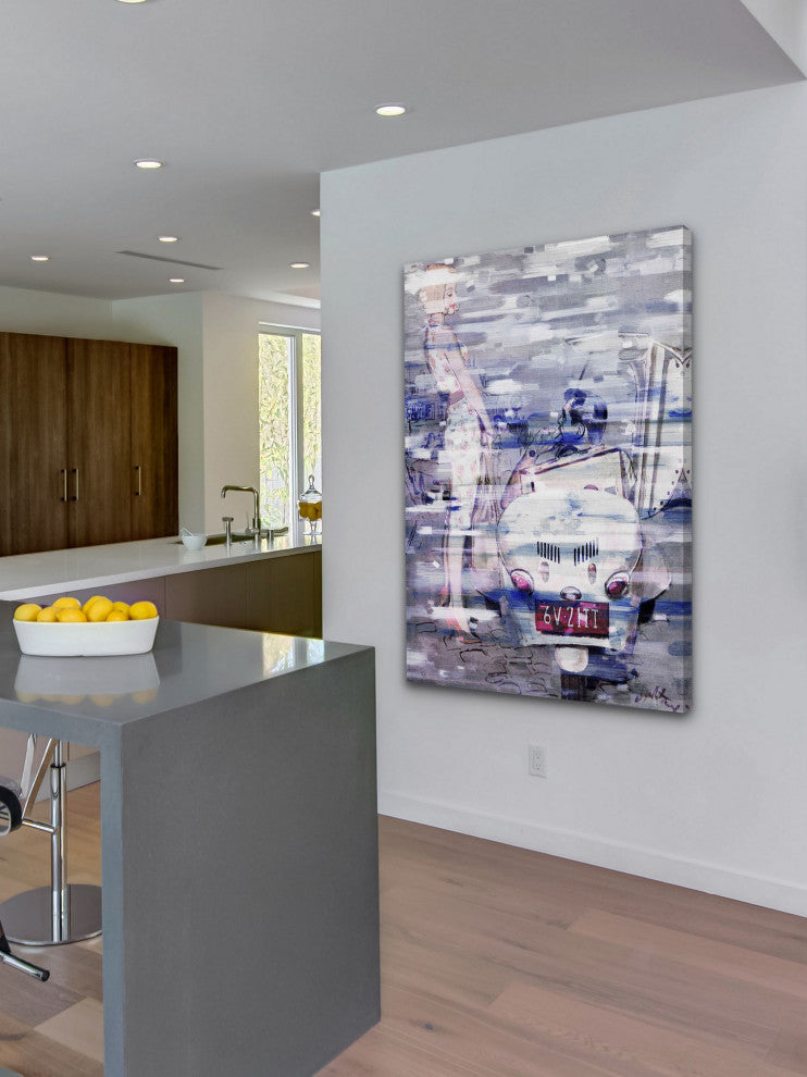 Striking and unique, the "Wanna Ride" Print on Canvas by Parvez Taj will bring your walls to life. Printed on canvas, this 30 inch wide by 45 inch tall contemporary artwork will make a statement in any living room, dining room, or bedroom.- Fine art canvas print by Parvez Taj- Professionally hand stretched- Gallery wrapped in sustainable, non-warping wood- Arrives ready to hang- Made in the USA- Includes a certificate of authenticity- Artist signature on the front