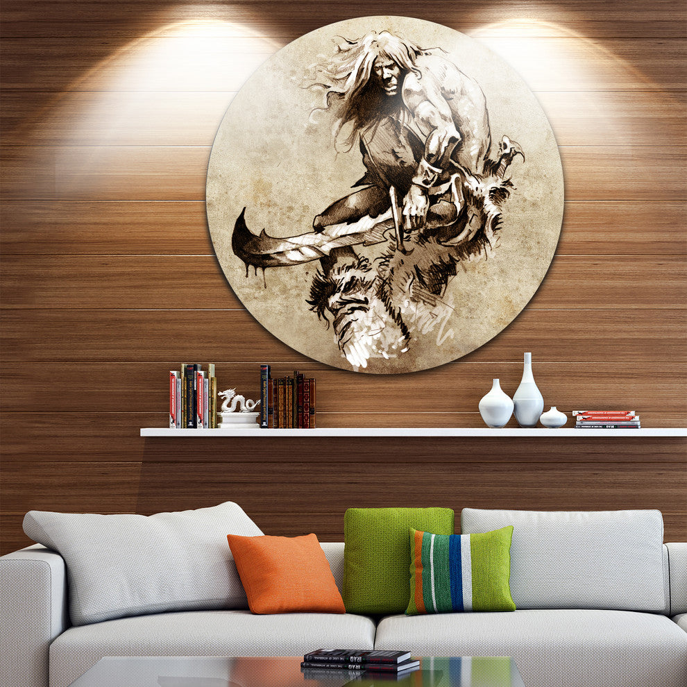 Bring Contemporary Abstraction to your home with this large Circle Metal wall art. This Warrior Fighting Tattoo Art Metal Artwork makes it the focal point of any room or office.