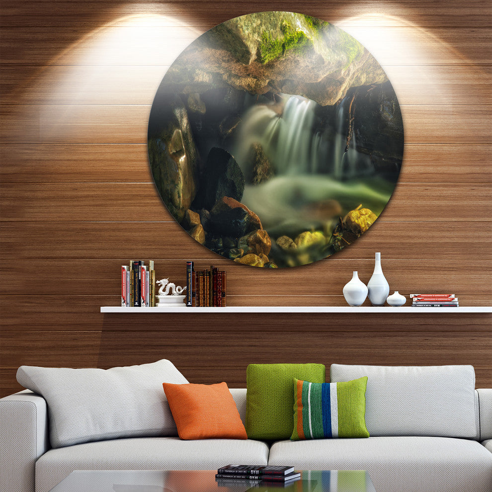 Bring Contemporary Abstraction to your home with this large Circle Metal wall art. This Wasatch National Forest Waterfall Metal Artwork makes it the focal point of any room or office.