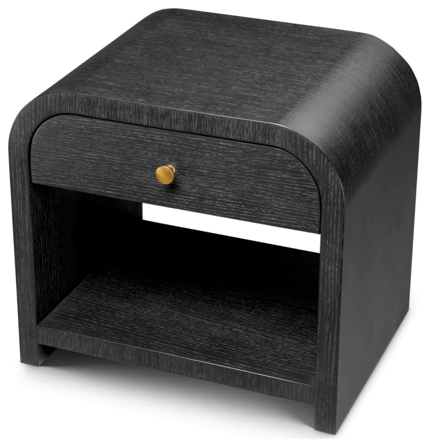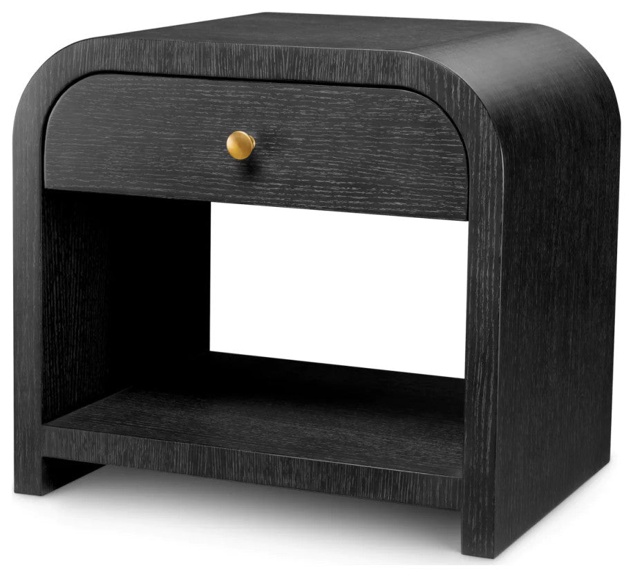 Washed Oak 1-Drawer Nightstand, Eichholtz Rhodes, Black