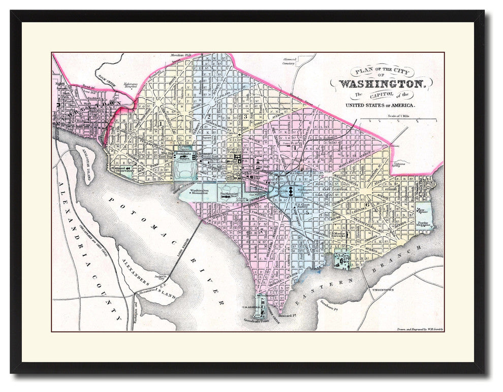 Washington Dc Vintage Antique Map Wall Art, 28"x37"