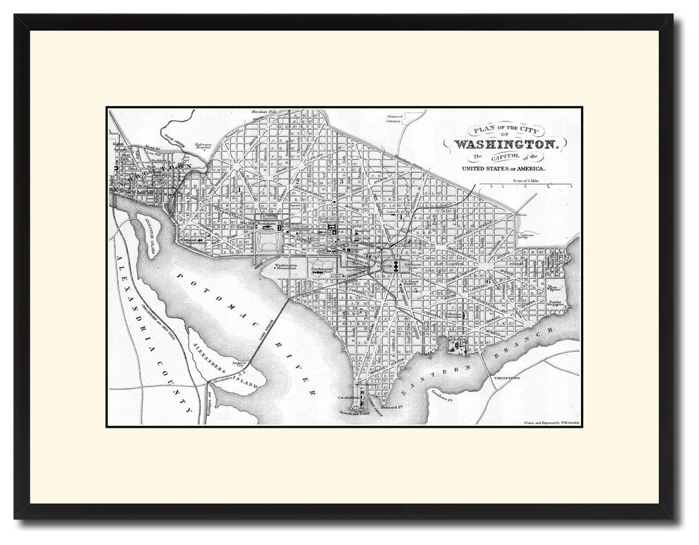 Washington Dc Vintage B&W Map Canvas Print, 16"x21"