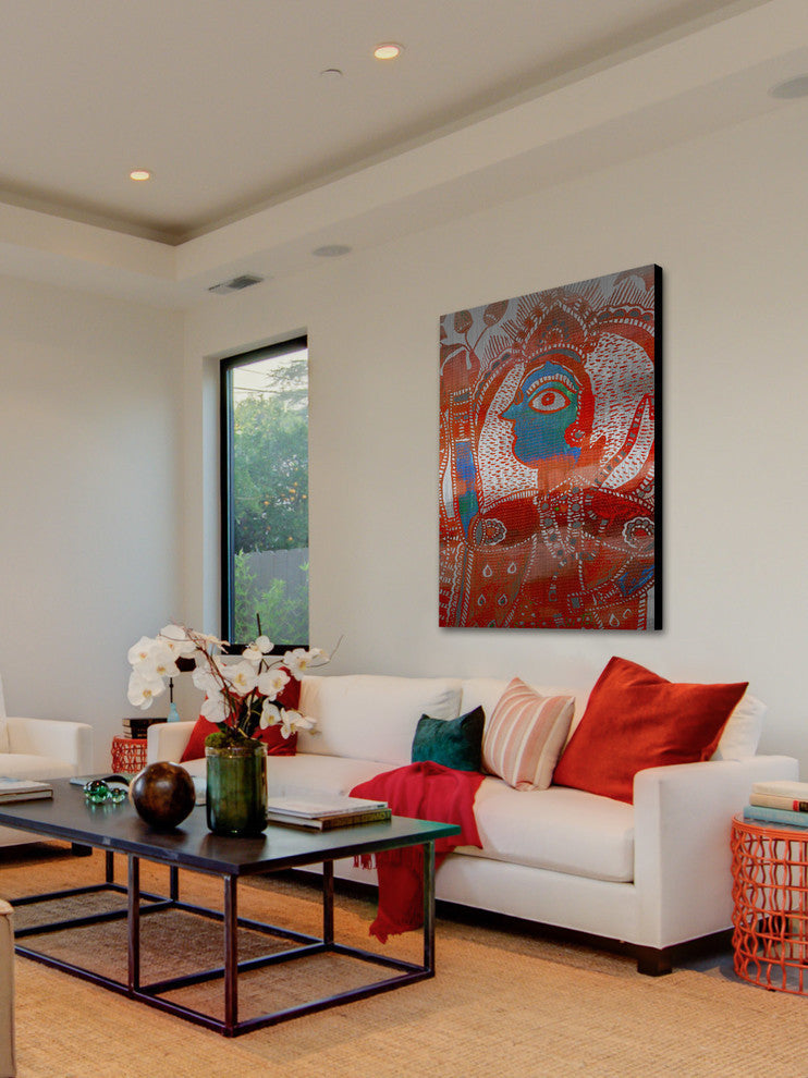 Striking and unique, the "Watching You" UV Ink Print on Brushed Aluminum by Parvez Taj will bring your walls to life. Printed on aluminum, this 30 inch wide by 45 inch tall contemporary artwork will make a statement in any living room, dining room, or bedroom.- Fine art UV ink print on brushed aluminum by Parvez Taj- The aluminum pops the colors and creates an iridescent shimmer, which gives depth to a room- Arrives ready to hang - Includes a certificate of authenticity- Artist signature on the front