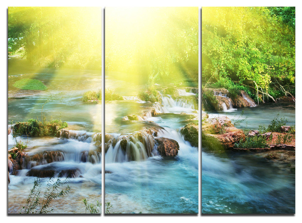 "Water Cascade Under Shiny Sun" Beach Metal Wall Art, 3 Panels, 36"x28"