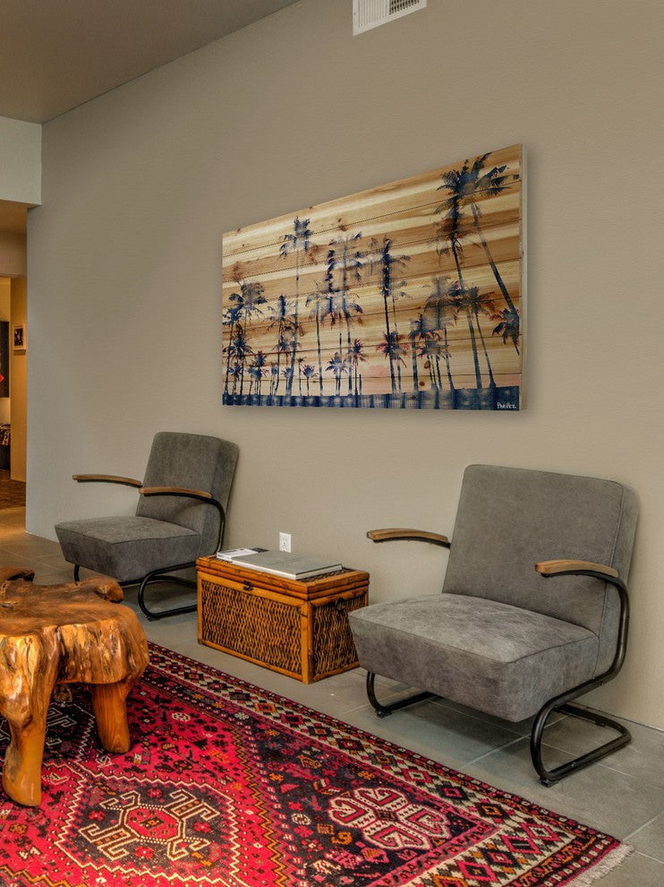 "Watercolor Palms" Print on Natural Pine Wood, 45"x30"