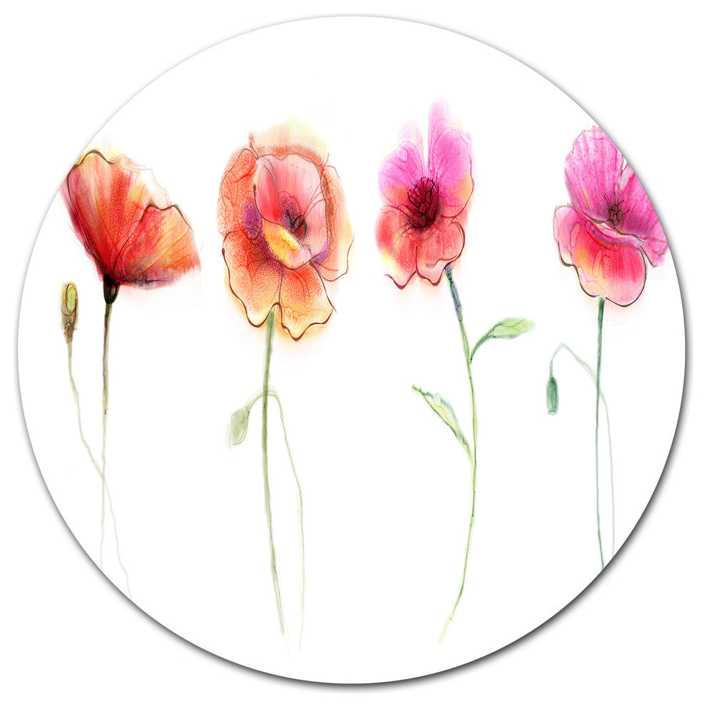 Bring Contemporary Abstraction to your home with this large Circle Metal wall art. This Watercolor Poppy Flowers Sketch Metal Artwork makes it the focal point of any room or office.