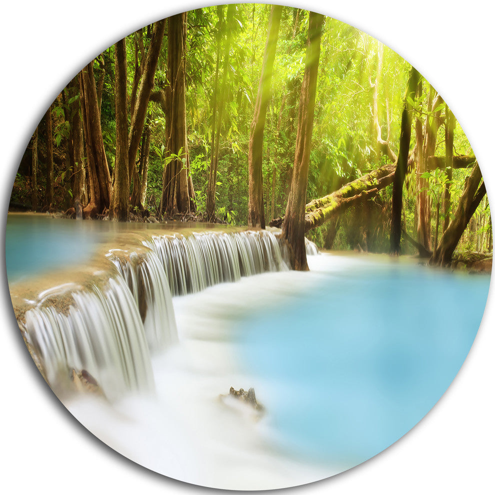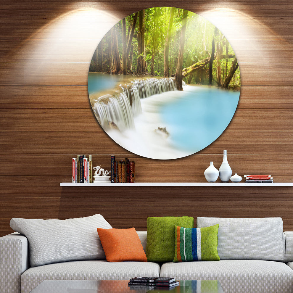 Waterfall Of Huai Mae Kamin, Landscape Round Metal Wall Art, 11"
