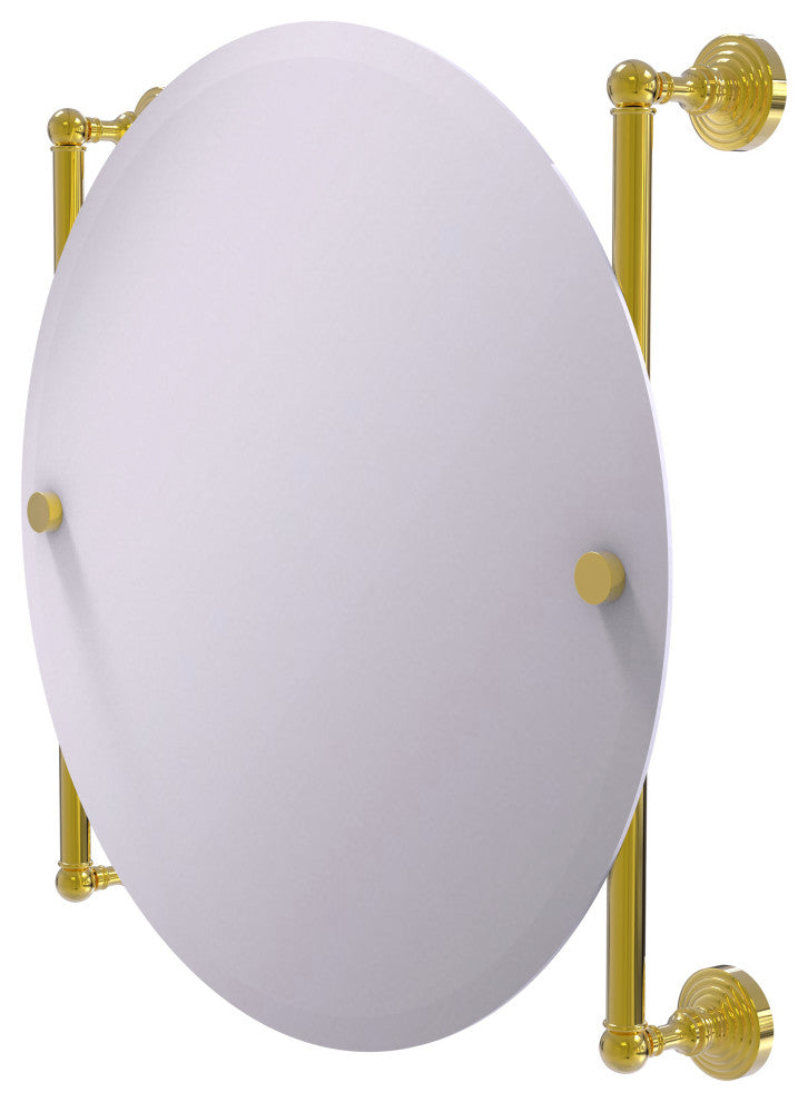 Waverly Place Round Frameless Rail Mounted Mirror, Polished Brass