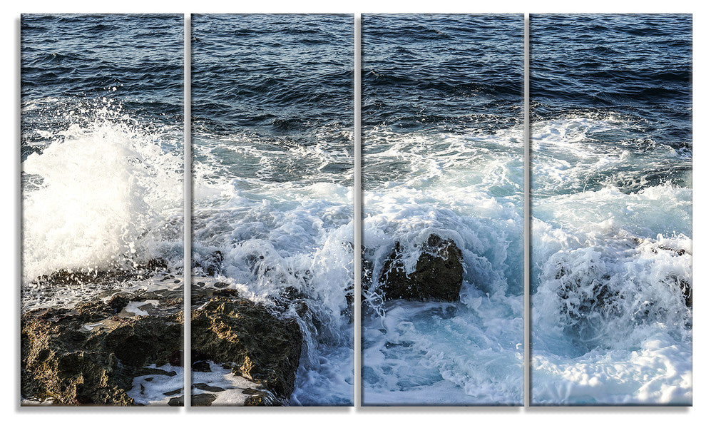 "Waves Breaking on Stony Beach" Seascape Wall Art, 4 Panels, 48"x28"