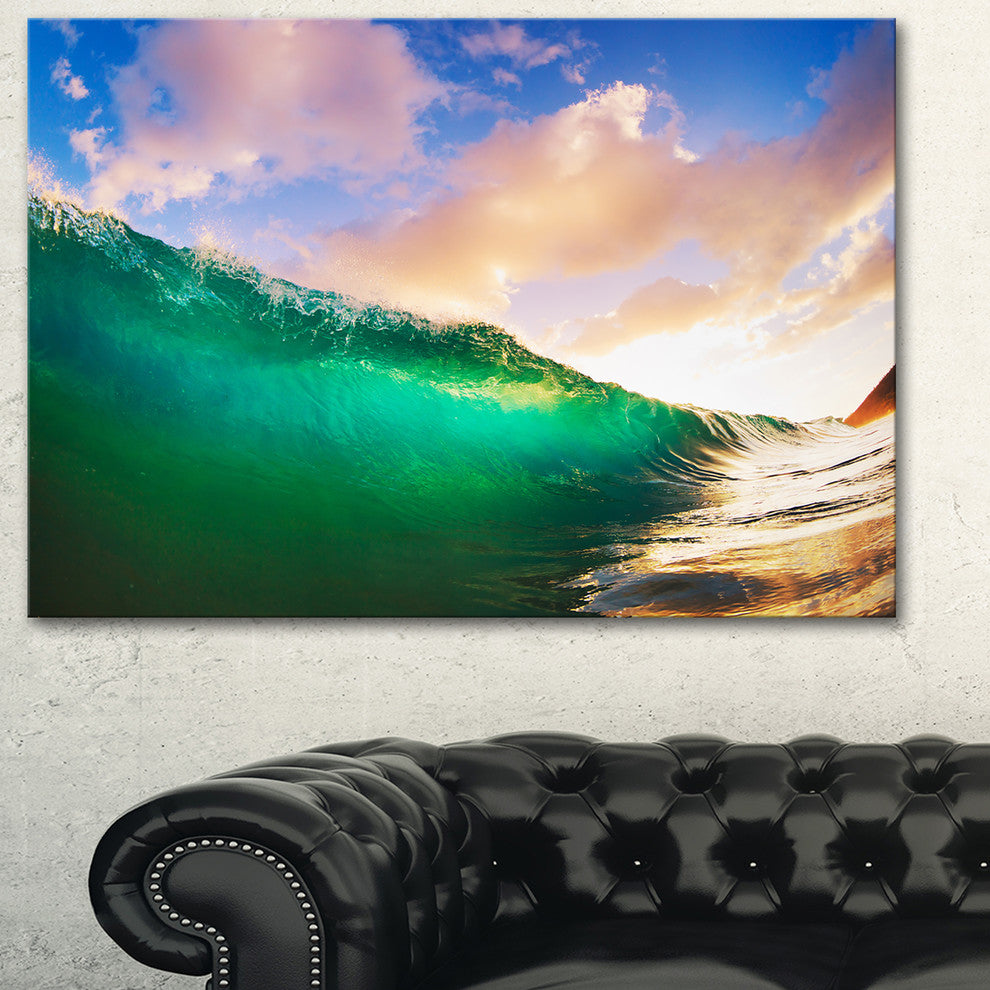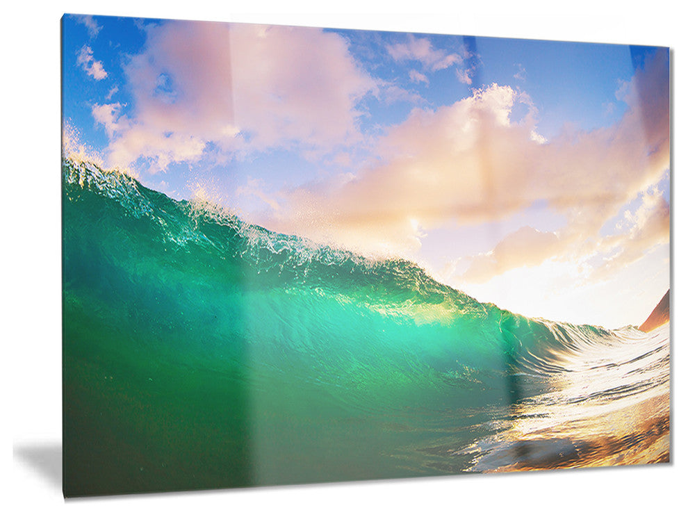 "Waves under Cloudy Sky" Seascape Glossy Metal Wall Art, 28"x12"