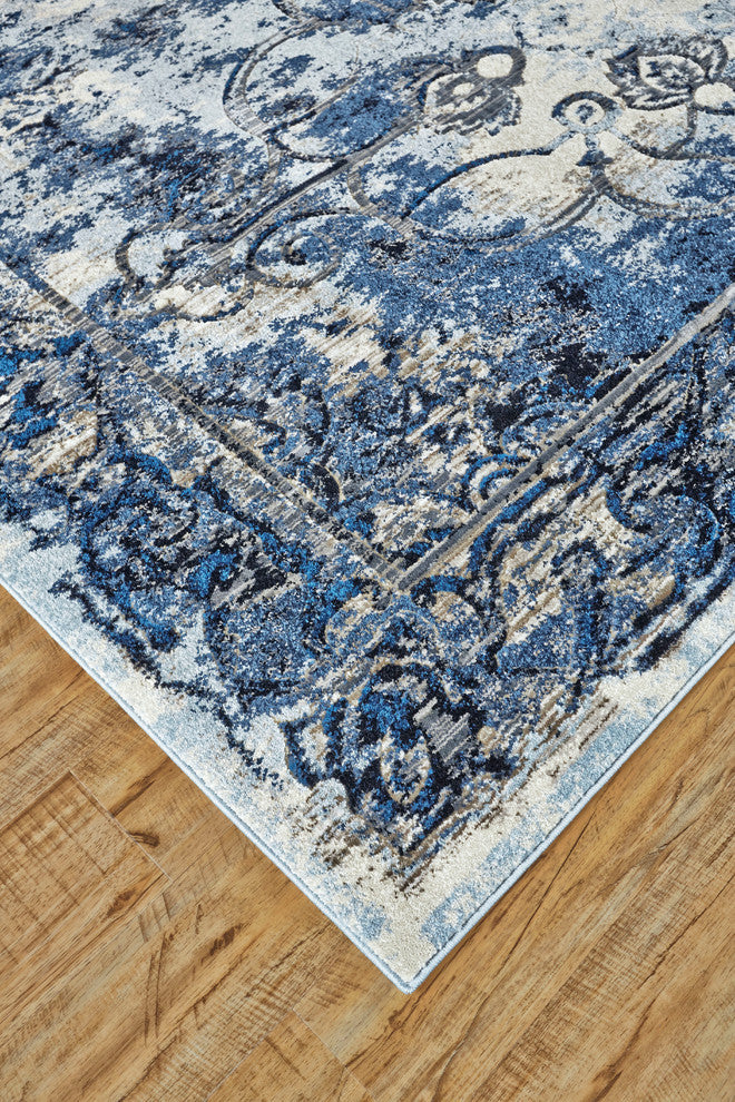 Carini collection is a machine woven area rug made in Turkey. The Carini is made with a Power Loomed polypropylene and polyester blend, which is great for long-lasting durability in high traffic areas. The patterns of the rug feature an ornamental scrolling motif on an ivory backdrop in various bold blue designs. The high-low pile construction gives each rug depth with a subtle sheen.