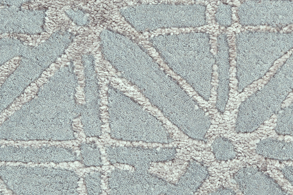 Hartford collection is hand tufted in India out of a premium wool blend. Featuring geometric patterns in silver, grey, cool blues, and neutral beiges tones , grid-like strokes form a bamboo lattice that characterizes the collection. The texturized high-low effect in the fiber blend intensifies the print and comfort factor of this rug. Ideal placement is somewhere that may experience high traffic. Durable construction and a design in constant motion makes this collection perfectly suited for modern transitional and traditional interiors.