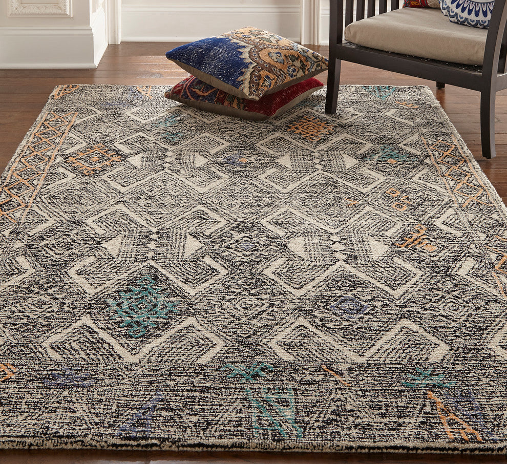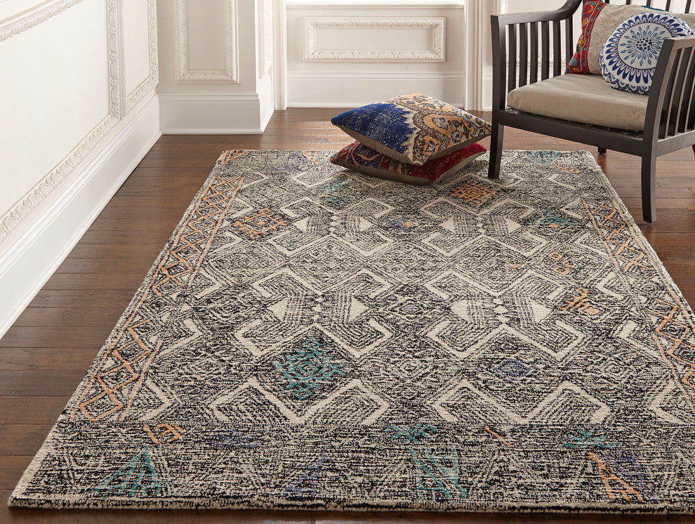 Hand tufted in India, Binda collection combines the best of both traditional and tribal styles. The Oria is 1% premium wool pile delivering on low maintenance while having a high-end appeal. Ideal for creating cool yet contemporary living spaces for the modern nomad, the chevron pattern with graphic black line work makes this rug stand out and complement a wide variety of home d�cor styles.Various colorways are available ranging from pastel blues and golden hues paired alongside bright teal greens and pops of orange.