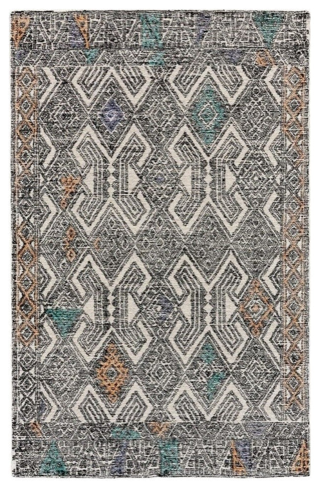 Weave & Wander Oria Rug, Black/Tangerine, 8'x11'