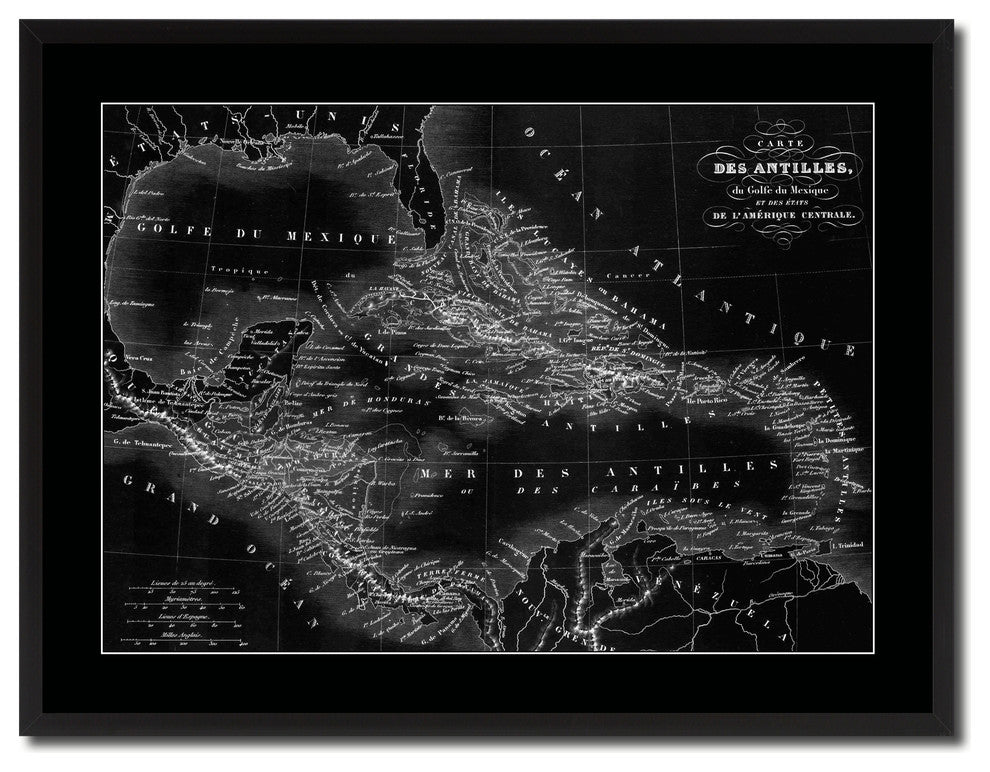 West Indies Caribbean Vintage Monochrome Map Canvas, 28"x37"