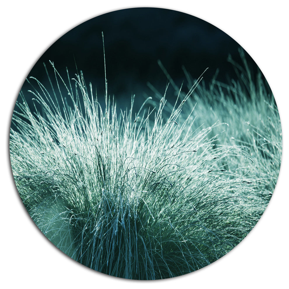 Bring Contemporary Abstraction to your home with this large Circle Metal wall art. This Wet Green Grass in Downpour Metal Artwork makes it the focal point of any room or office.