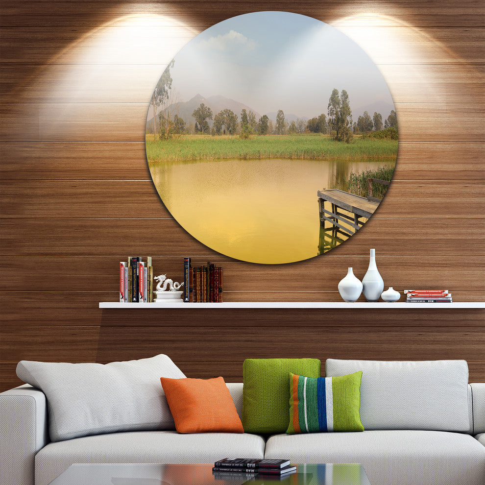 Bring Contemporary Abstraction to your home with this large Circle Metal wall art. This Wetland of Nam Sang Wai Yellow Metal Artwork makes it the focal point of any room or office.