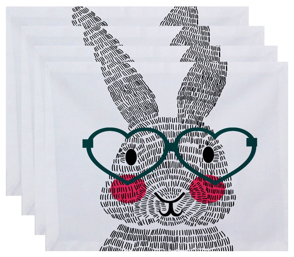 What's Up Bunny?, Holiday Animal Print Placemat, Set of 4, Teal