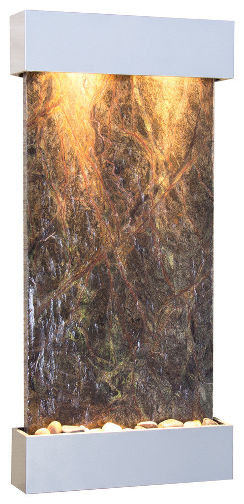 Whispering Creek Water Feature, Green Marble, Silver Metallic