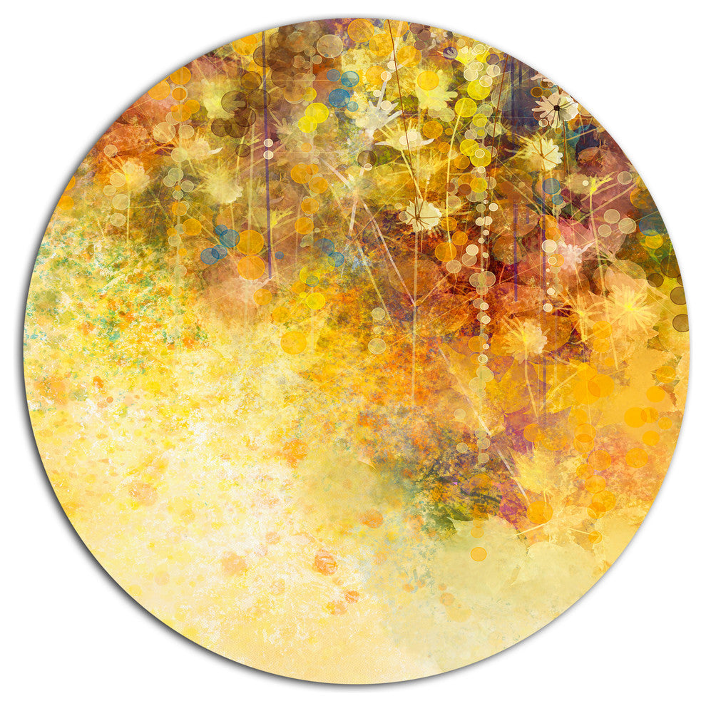 Bring Contemporary Abstraction to your home with this large Circle Metal wall art. This White Flowers and Soft Color Leaves Metal Artwork makes it the focal point of any room or office.