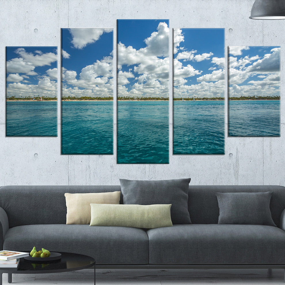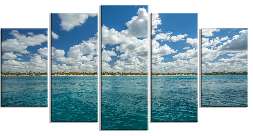 "White Fluffy Clouds Over Sea" Oversized Beach Canvas Artwork, 5 Panels, 60"x32"