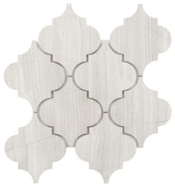 White Oak Arabesque Honed marble mosaic is rich with shades of cool and warm whites in a natural linear pattern echoing natural oak. This marble is recommended for interior projects including backsplash, accent walls for residential and commercial spaces.