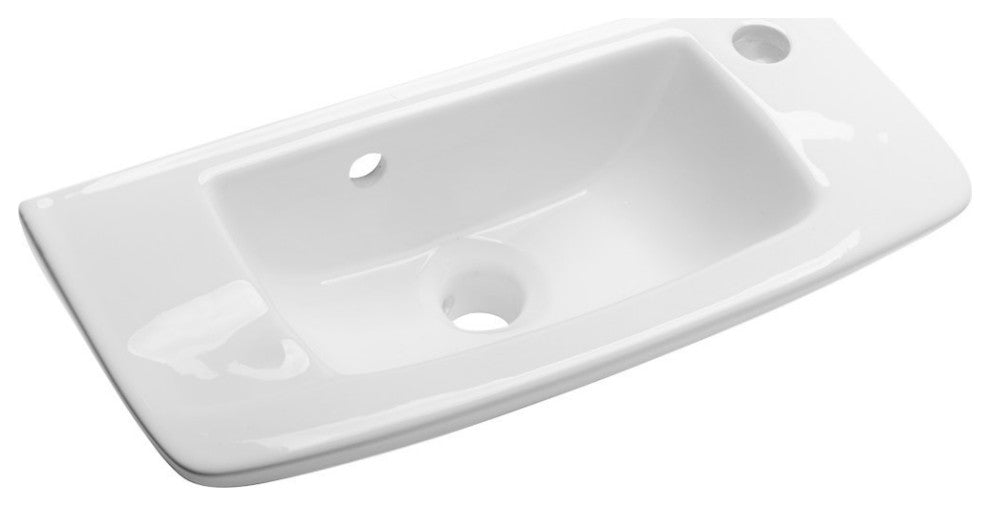White Rectangular Wall Mount Bathroom Vessel Sink With Overflow and Faucet Holes