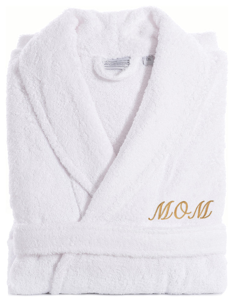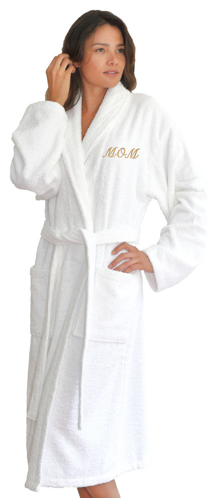White Terry Bathrobe For Mom With Color Gold Embroidery, Small/Medium