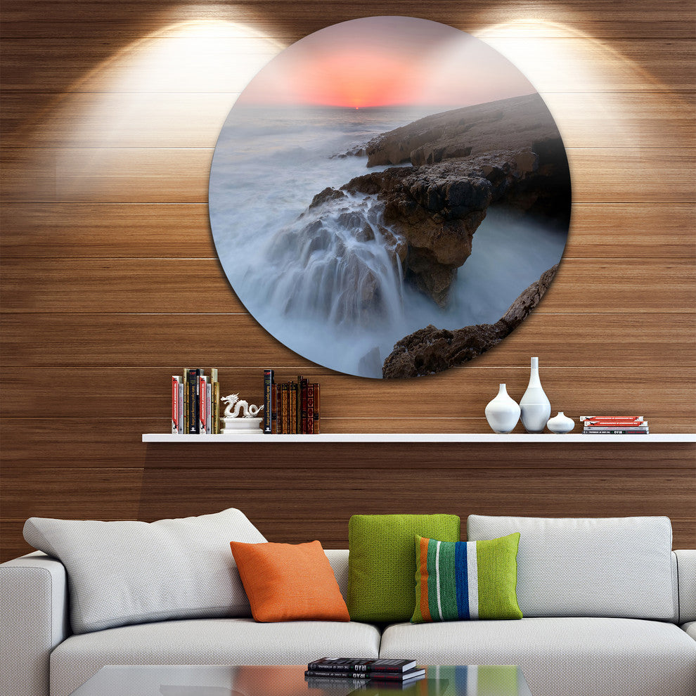 White Waters At The Bridge Of Hell, Seascape Round Metal Wall Art, 36"
