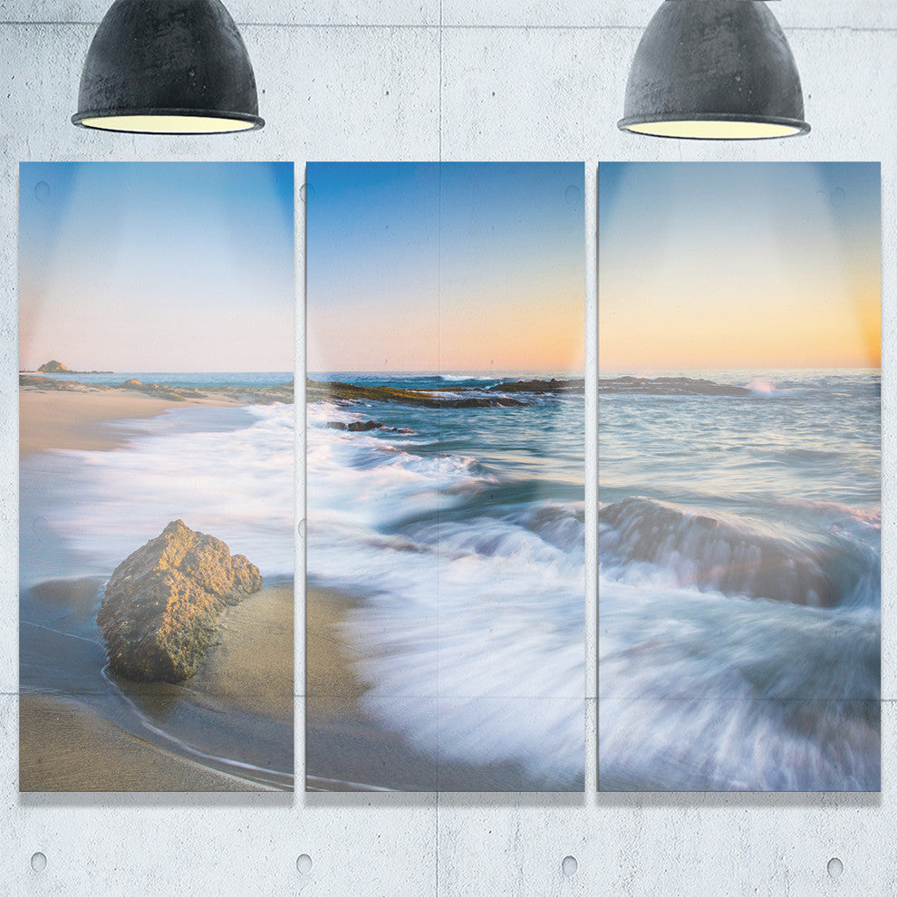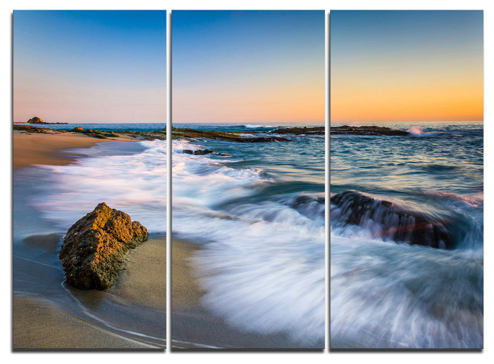 "White Waves Crashing on Rocks" Metal Wall Art, 3 Panels, 36"x28"