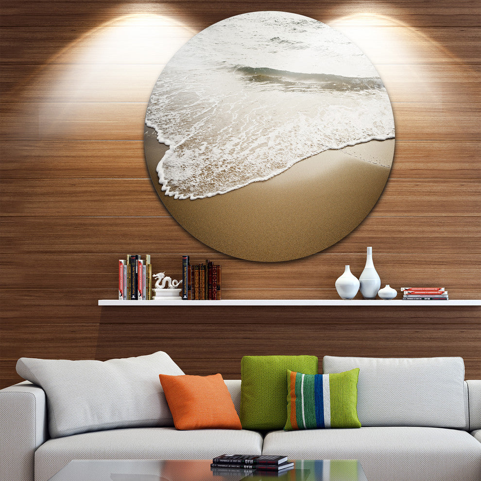 Bring Contemporary Abstraction to your home with this large Circle Metal wall art. This White Waves in Mediterranean Sea Metal Artwork makes it the focal point of any room or office.