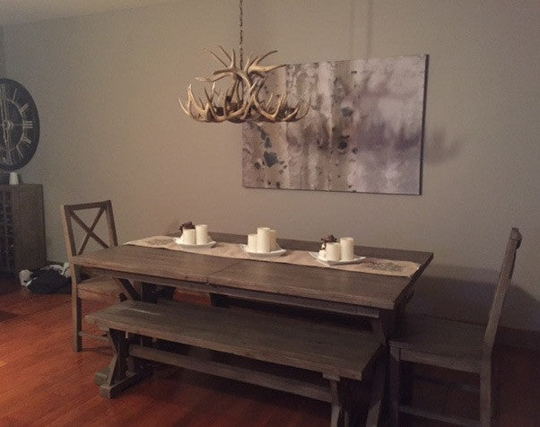 Whitetail Deer Oblong Antler Chandelier Light, Extra Large, Rawhide Shades