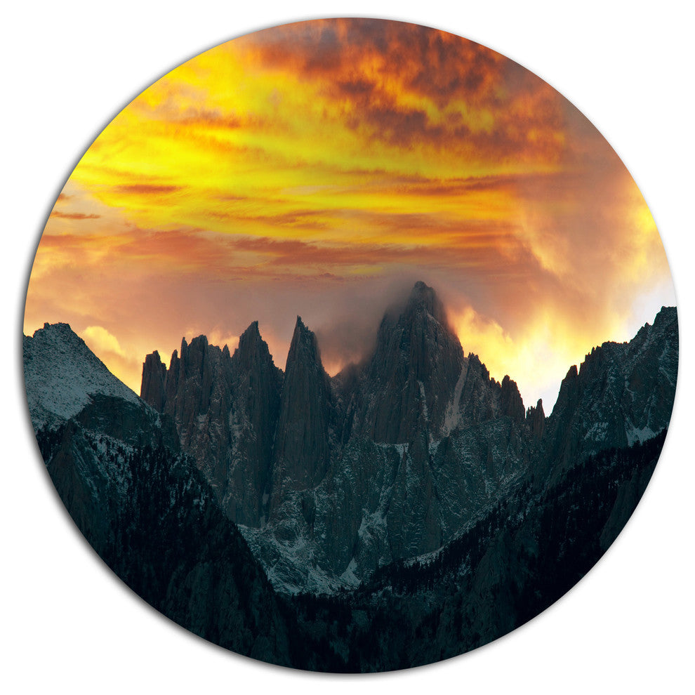 Whitney Mountains Under Cloudy Sky, Landscape Round Wall Art, 11"