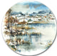 Wide Blue Winter Lake Watercolor, Landscape Round Wall Art, 23"