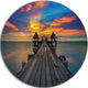 Wide Wooden Bridge Into Distant Sun, Sea Pier Disc Metal Artwork, 11"