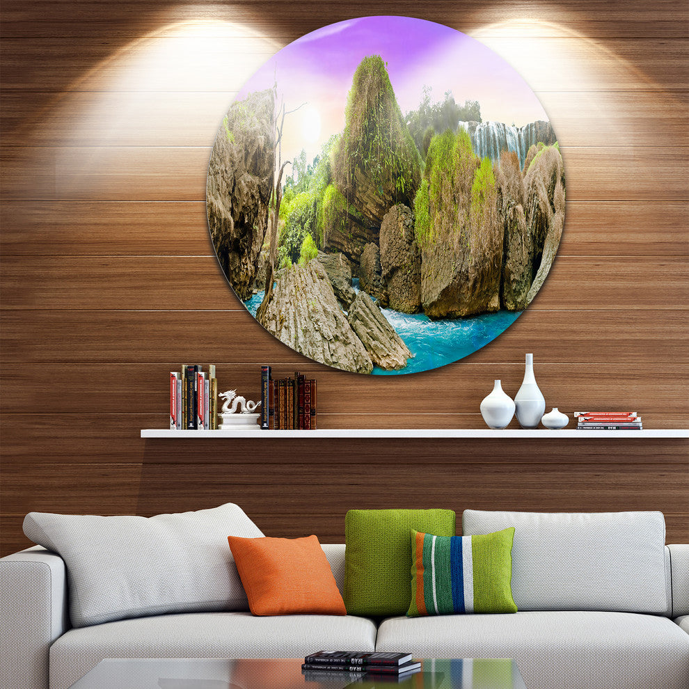 Wild Forest And Waterfall Vietnam, Landscape Disc Metal Wall Art, 36"