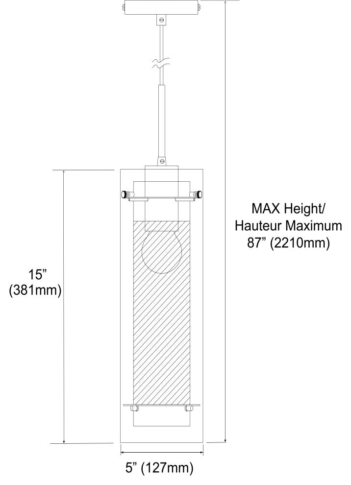 Add essential light and striking appeal to your kitchen prep space or powder room with the Willamette Pendant. This fixture is sleek and minimalistic with just the right amount of stylized elements to make a shining statement in your contemporary or modern design.Does not include bulbRequires 1 type A, E26 bulbDimmableIncandescent or halogen dimmer recommendedMaximum wattage: 100Voltage: 120UL listedCSA approvedHardwiredFeatures clear glass and frosted glass shade with oil rubbed bronze hardwareAdjustable height46" electrical wire48" drop cordDrop length between 8" and 42"Rated for dry locationCan be installed on sloped ceiling with a maximum angle of 45 degrees1-year warrantyCan be used commerciallyFinish: Polished chromeMaterials: Steel and glassDimensions: W 5" x D 5" x H 15"