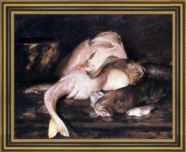 William Merritt Chase Still Life Fish Framed Premium Canvas Print, 20"x25"