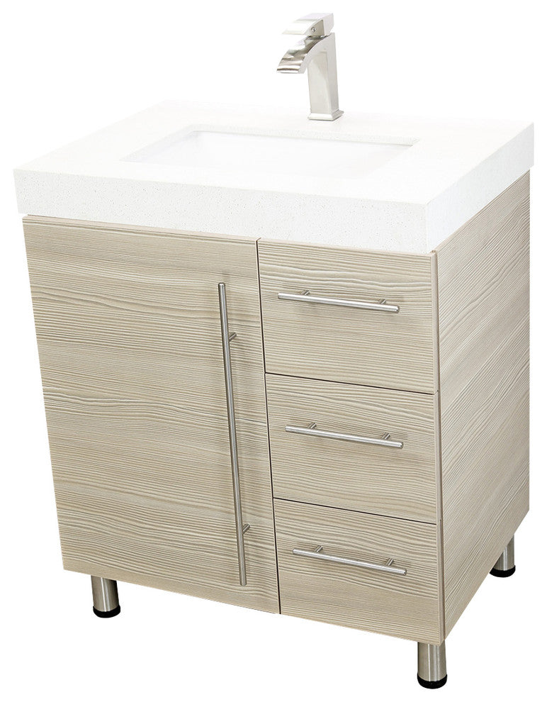 Windbay 30" Free Standing Vanity, Tan, White Integrated Sink and Countertop