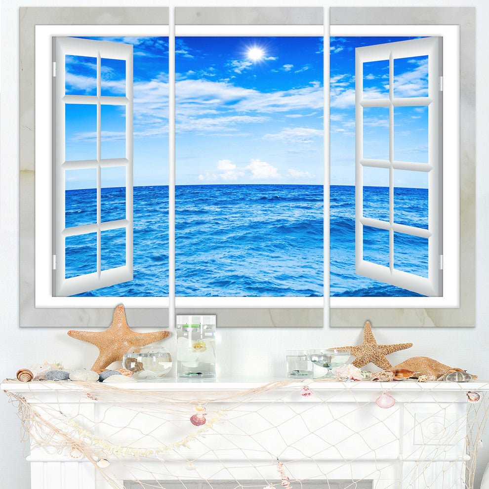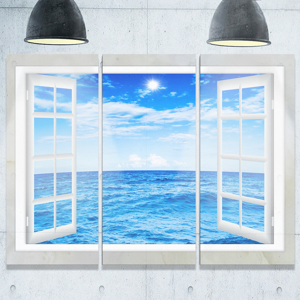 "Window Open to Blue Wavy Ocean" Metal Wall Art, 3 Panels, 36"x28"