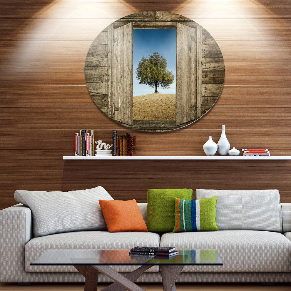 Window Open To Solitary Tree, Landscape Round Metal Wall Art, 36"