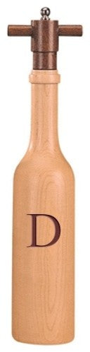 Wine Bottle Maple Wood Pepper Grinder, Custom Personalized Initial,  "D"