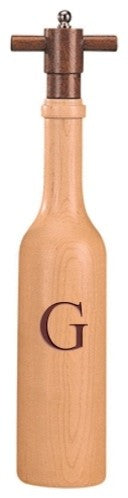 Wine Bottle Maple Wood Pepper Grinder, Custom Personalized Initial, "G"