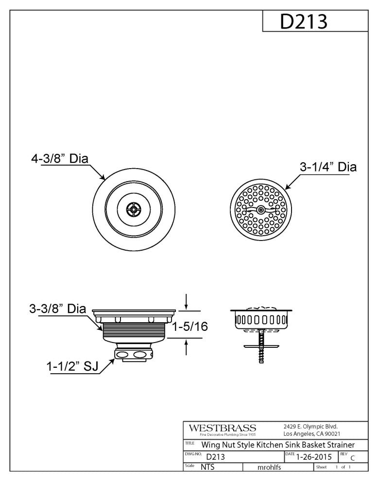 Enjoy both convenience and style with the large wing nut style kitchen sink basket strainer from Westbrass. The wing nut can conveniently be turned to open or close the basket to slow the drain of water. Available in a variety of finishes, this item is sure to complement your existing decorative fixtures.