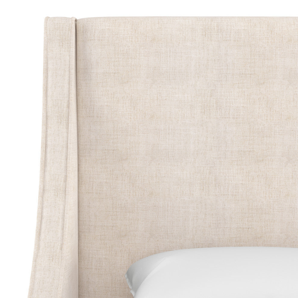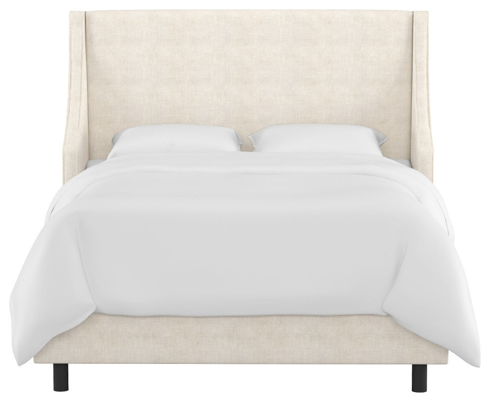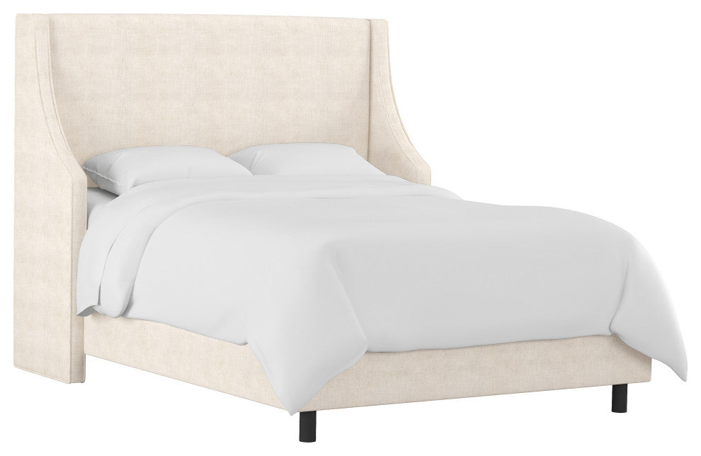 This square top bed features a strong curved wingback design alongside a plain front. These elements blend perefctly to lend a touch of style and create a piece that will be the center of your bedroom design. The made to order headboard matches up easily with the included metal frame and hand upholstered rails making assembly simple. An inclusive transitional design makes it an easy addition to any bedroom space. The bed is manufactured in Illinois and highlights a beautiful Classic Linen fabric.