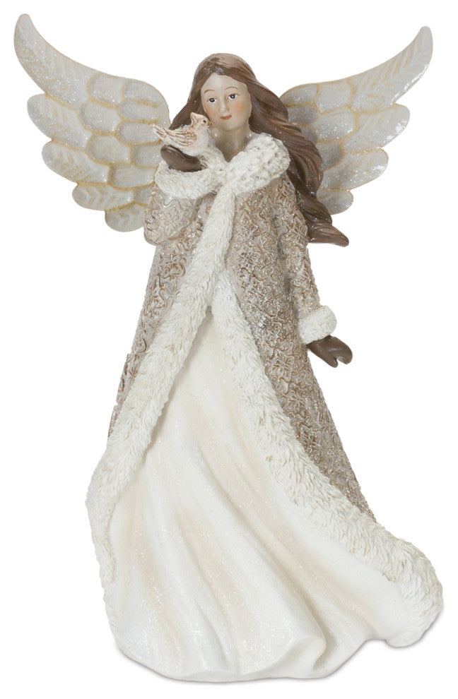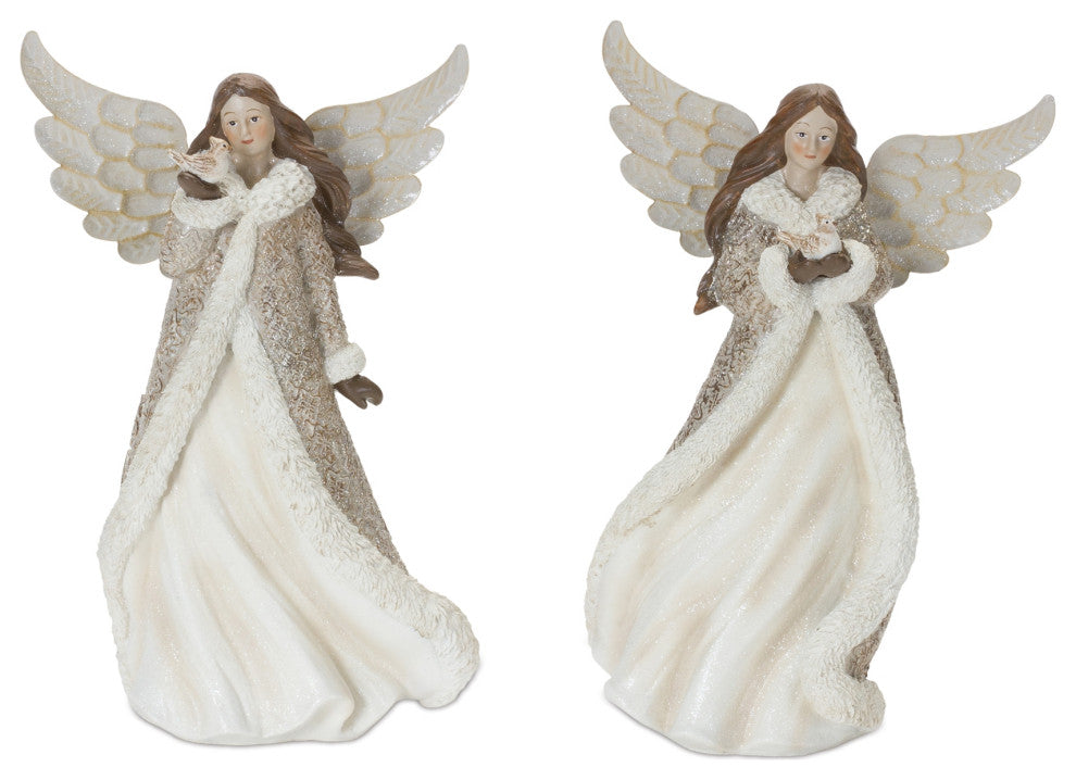 Winter Angel Figurine With Bird Accent, 2-Piece Set