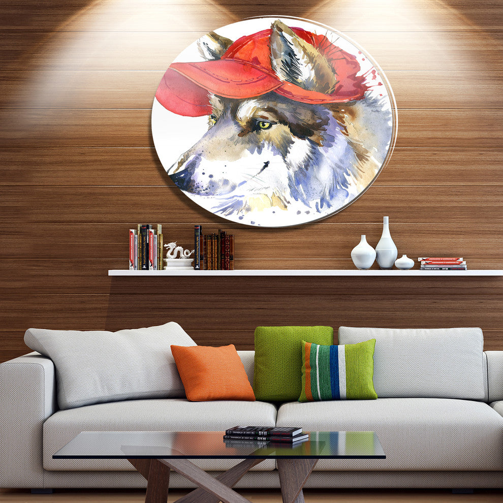 Bring Contemporary Abstraction to your home with this large Circle Metal wall art. This Wolf with Red Cap Illustration Metal Artwork makes it the focal point of any room or office.