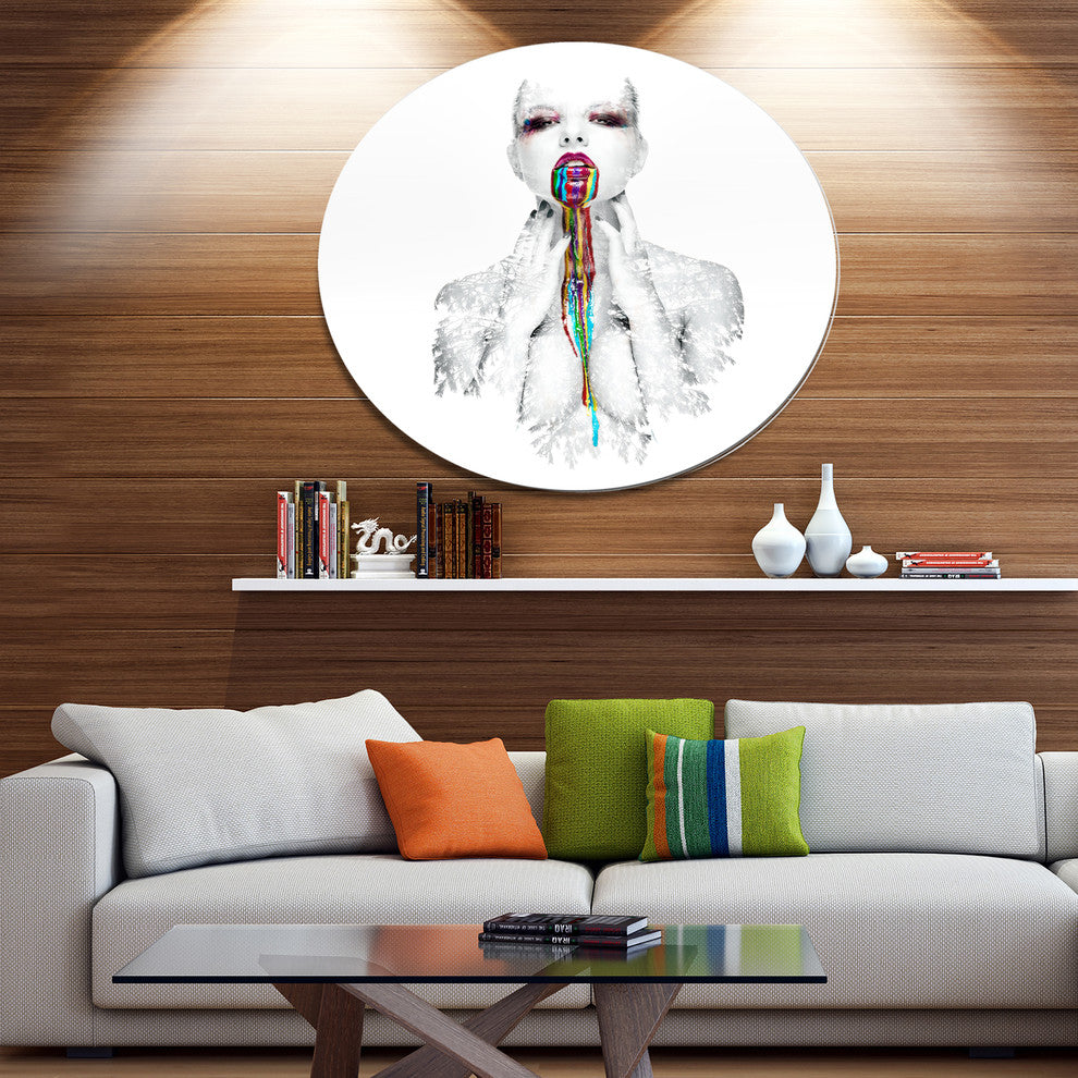 Woman With Creative Bright Make-Up, Portrait Round Metal Wall Art, 23"