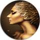Woman With Gold Feather Hat, Contemporary Large Disc Metal Artwork, 23"